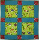 Marie from Auckland sent me this photo of a Baby quilt that she made using the Disappearing nine patch pattern from my rollups and the Baby Safari fat quarter pack plus 1 extra fat quarter. Marie said there was very little fabric left over as she used it all for the binding. Finished quilt about 49" square and it was well received by the recipients. |