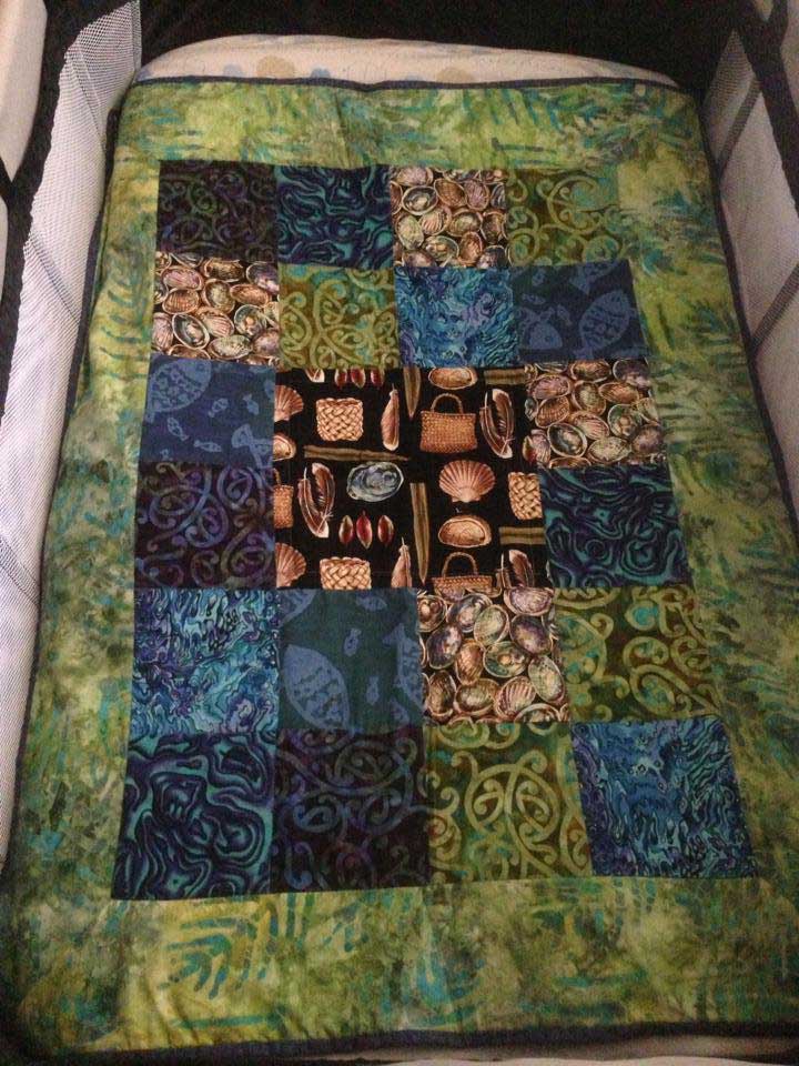 This gorgeous baby quilt was made and designed by Erica from Alice Springs, Australia. Just lovely with all those luscious Kiwiana batiks. |
