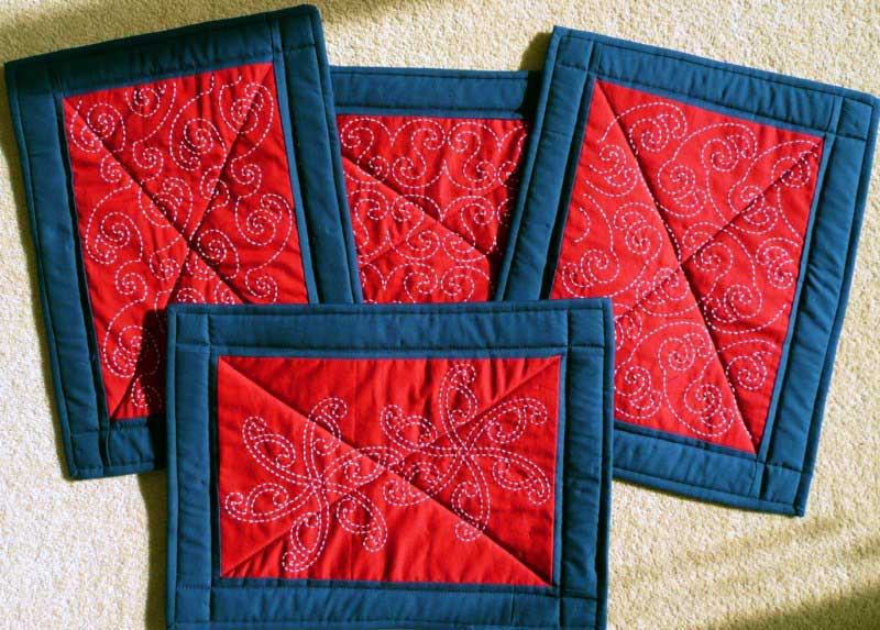 Angela from Toowoomba made her 2-year old granddaughter some placemats, using my free tablemat pattern, as she is now out of her high chair and sitting at the table. They're both the same, so she can use the apple one one day and the green one another. |