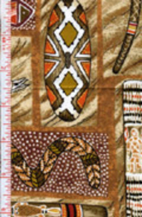 Drawings of aboriginal artifacts such as the didgeridoo and sand drawings.