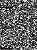 White line drawings of kiwi sheltering under giant ponga ferns on a black background.